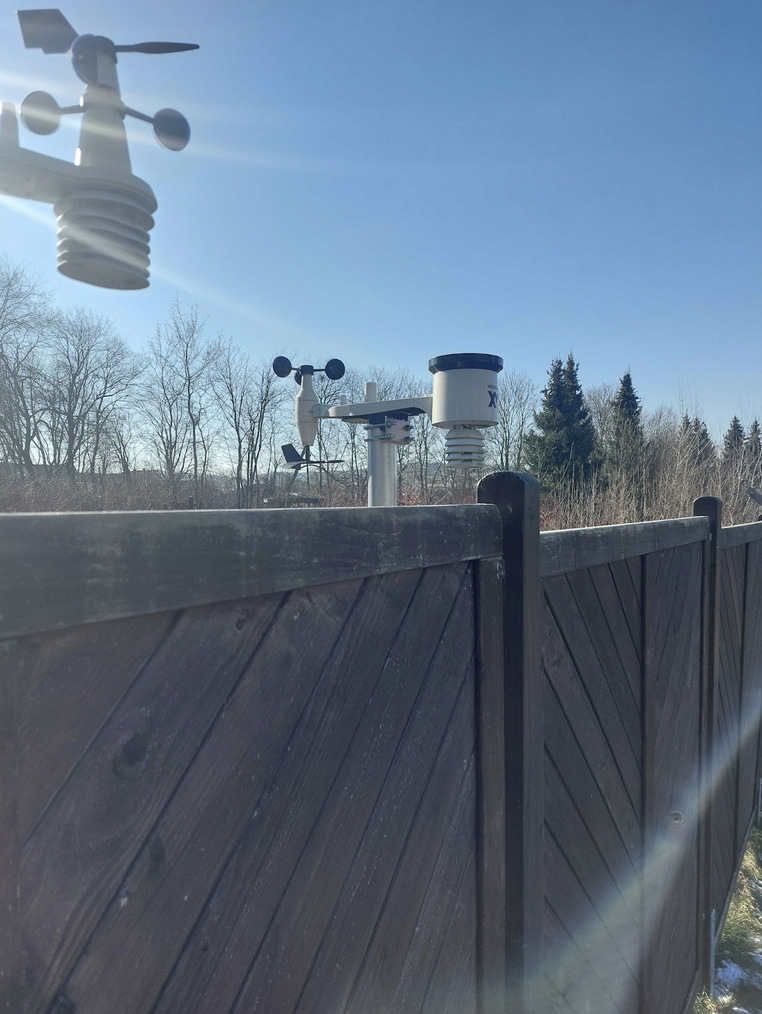 - The mast is much lower than the recommended height, and the temperature measurements are certainly affected by the dark-coloured roof.