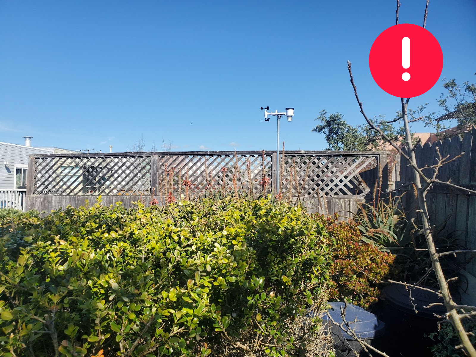 The station is placed just a few tens of centimetres over a wooden structure. From this photo it is unknown if there are any obstacles at the north-east-south.